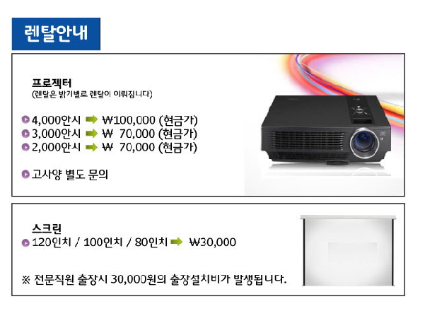 스크린및 음향장비도 렌탈 가능합니다.