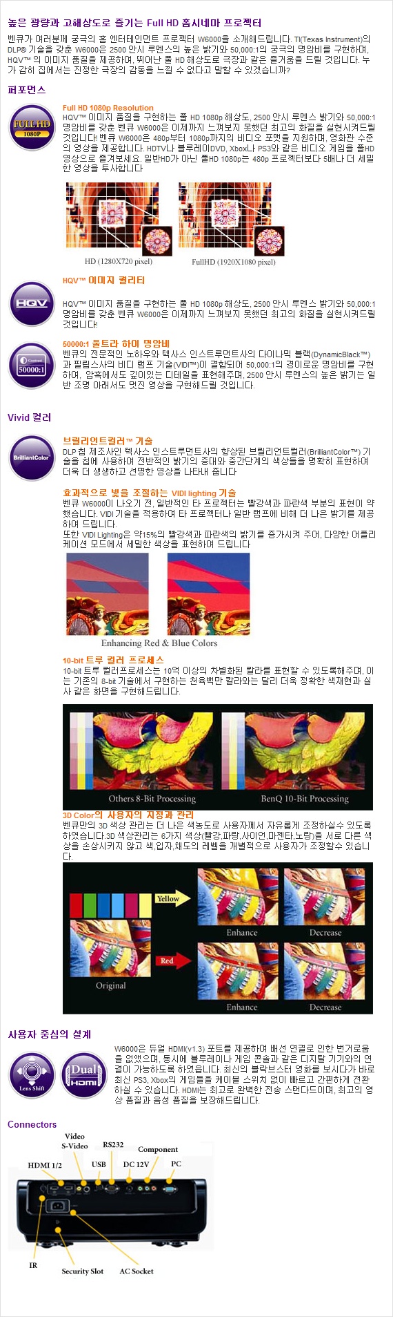 BENQ DLP프로젝터 W6000